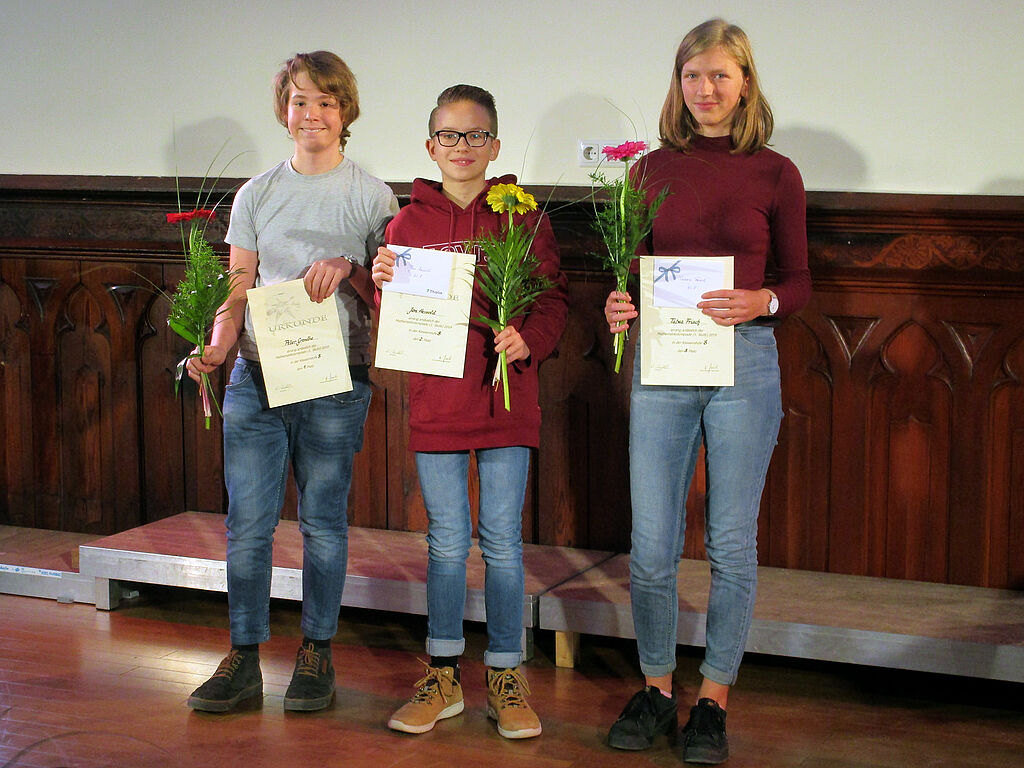 Die Preisträger wurden in einer feierlichen Auszeichnungsveranstaltung von Herrn Arendholz und Frau Kirchhof mit Urkunden und Büchergutscheinen geehrt.