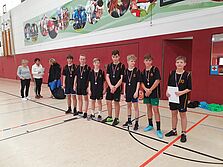 Die Jungen traten im Modus "Jeder gegen jeden" an. Mit dabei waren die Schüler aus der RS Neusitz, RS "Scholl", RS "Schiller". In den ersten Spielen trafen die Jungs auf keine große Gegenwehr und gewannen hoch und angemessen. Das letzte Spiel war somit gegen die RS Neusitz das "Finalspiel" - jeder konnte gewinnen. Beide Teams begannen mit einem zügigen Tempo ohne Korberfolge. Dabei hatten unsere Jungs die meisten Korbwurfversuche - leider ging das Runde nicht in den Korb. Nach dem Wechsel dominierte unser Team - doch nach einer Unaufmerksamkeit in der Defensive kam Neusitz zu einem Dreipunkteerfolg. Nun wurde es fahriger, mit mehreren Korbchancen für die Gymnasiasten und schnellen Kontern mit Korberfolgen für die Neusitzer. Schade. Am Ende stand es 7:2 gegen uns und somit Platz 2.