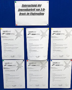 Auch auf dem Gebiet Technik konnten sich Fridericianer beweisen. Die Gruppe um Jakob Breternitz, Colin Moehrke und Jan Troche konnte mit ihrem Thema "Untersuchung der Anwendbarkeit von 3-D-Druck im Flugzeugbau" den 2. Platz ergattern. Außerdem erhielten sie für ihre Arbeit den Sonderpreis Umwelttechnik.