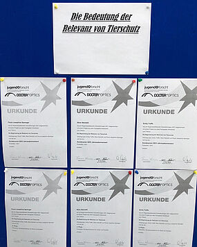 Das erste Team beweist ganz klar, dass Forschung und Frauenpower keinesfalls Gegensätze sein müssen. Paula Sprenger, Stine Steinbiß und Emily Treffs konnten im Fachgebiet „Arbeitswelt“ mit ihrem Thema "Die Bedeutung der Relevanz von Tierschutz" den 3. Platz belegen. Außerdem erhielten sie als Sonderpreis ein Jahresabo der GEO.