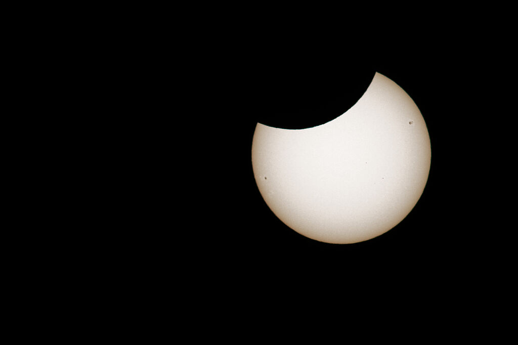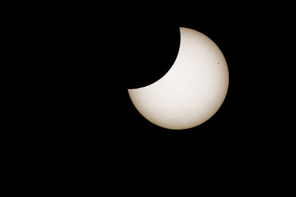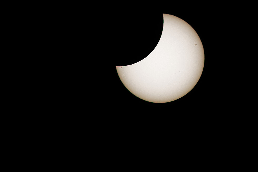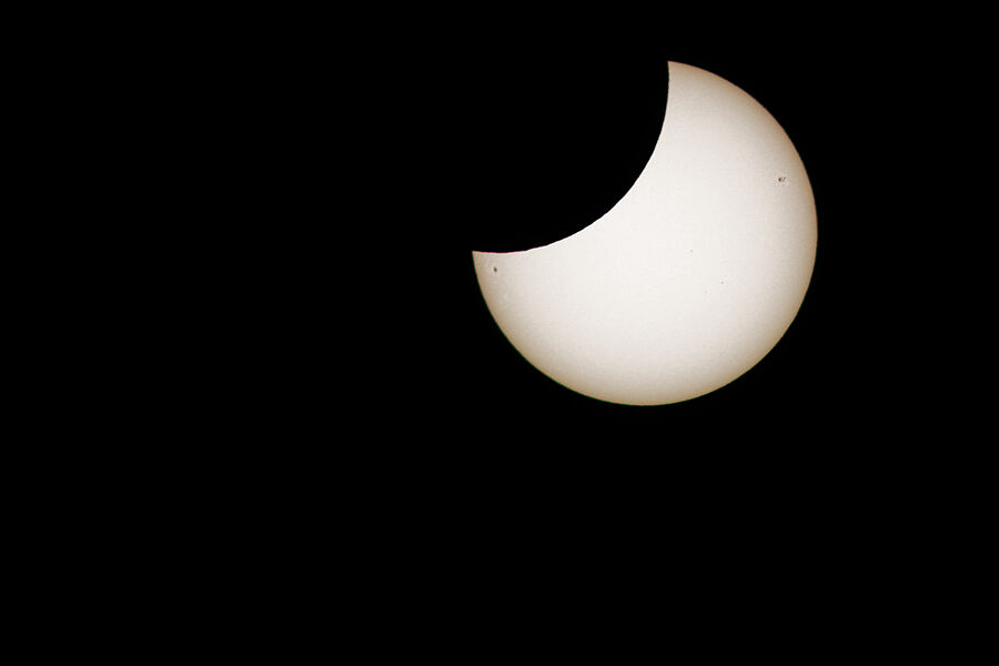 Sonnen- und Mondfinsternisse zählen zu den spannendsten Himmelsereignissen, die zu allen Zeiten Menschen in ihren Bann zogen. Am 25. Oktober konnte auch in Rudolstadt eine partielle Sonnenfinsternis beobachtet werden. Kurz nach 11:10 Uhr sollte die Sonne in den Schatten des Mondes eintreten. Der Beginn des astronomischen Spektakels verbarg sich leider hinter dichten Wolkenfeldern. Ab 11:40 Uhr bot der Himmel freie Sicht und die Besucher konnten mit Sonnenschutzbrillen oder am Teleskop das Ereignis verfolgen. Besonders interessant war die Wanderung des Mondschattens auf der Sonne im Vergleich zu zwei großen Sonnenfleckengruppen, von denen eine dann auch im Verlauf der partiellen Finsternis verschwand (siehe Fotoserie). Das Maximum war gegen 12:15 Uhr mit ca 27% Bedeckung erreicht. Bis gegen 13:00 Uhr war eine Beobachtung möglich. Der Austritt der Sonne aus dem Mondschatten war aufgrund weiterer Wolken wieder nicht sichtbar, aber eindrucksvoll war das Beobachten der „angeknabberte“ Sonne für alle Besucherinnen und Besucher allemal.