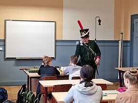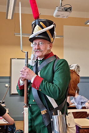 Zudem wurden die unmittelbaren Folgen für die Bewohner des Fürstentums Schwarzburg-Rudolstadt hervorgehoben. Besonderes Interesse hatten die Schülerinnen und Schüler an der gezeigten Uniform und den Ausrüstungsgegenständen aus der damaligen Zeit.