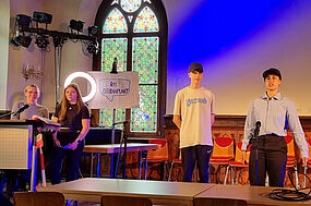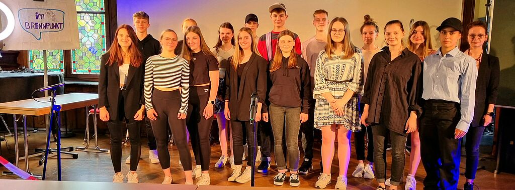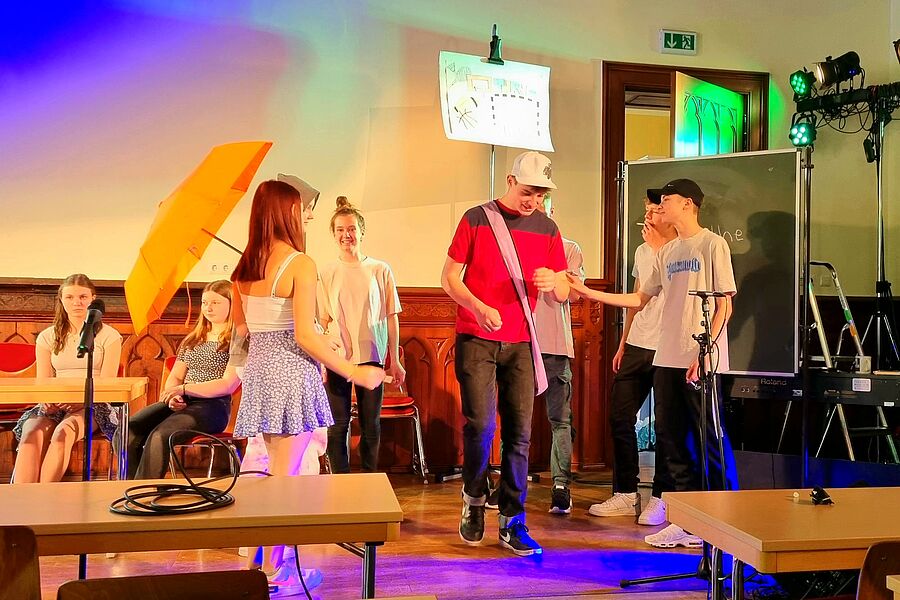 Wir, die Darstellen-Gestalten-Gruppe des Gymnasium Fridericianums Rudolstadt namens „Die MOF`s“, hatten am 18. Mai 2022 um 19 Uhr unsere erste Aufführung in der Aula. Rund 70 Zuschauer erschienen. Sowohl die Schauspieler als auch die Zuschauer waren aufgeregt und wir alle spürten deutlich die Anspannung.
