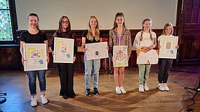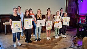 In den Wettbewerbskategorien Bildgestaltung und Kurzfilm werden alljährlich zunächst Ortssieger, dann Landes- und Bundessieger gekürt und mit attraktiven Preisen belohnt. Gleich sechs Fridericianerinnen wurden in diesem Jahr von der Jury für ihre Bildideen mit Preisen gewürdigt: Selma Querengässer (Kl. 5b), Marlene Sportleder (Kl. 6b) und Fiona Strupat (Kl. 6a) konnten sich auf Ortsebene mit ihren Bildern durchsetzen und bekamen dafür Sonderpreise von Frau Zimmermann, Regionaldirektorin der Volksbank Rudolstadt, übereicht. Emilia Ettrich (Kl. 5a), Zoe Hasner (Kl. 7a) und Mara Mona Marschewski (Kl. 7a) erreichten die beliebten vordersten Plätze auf Landesebene, die mit begehrten Geldpreisen dotiert sind.