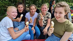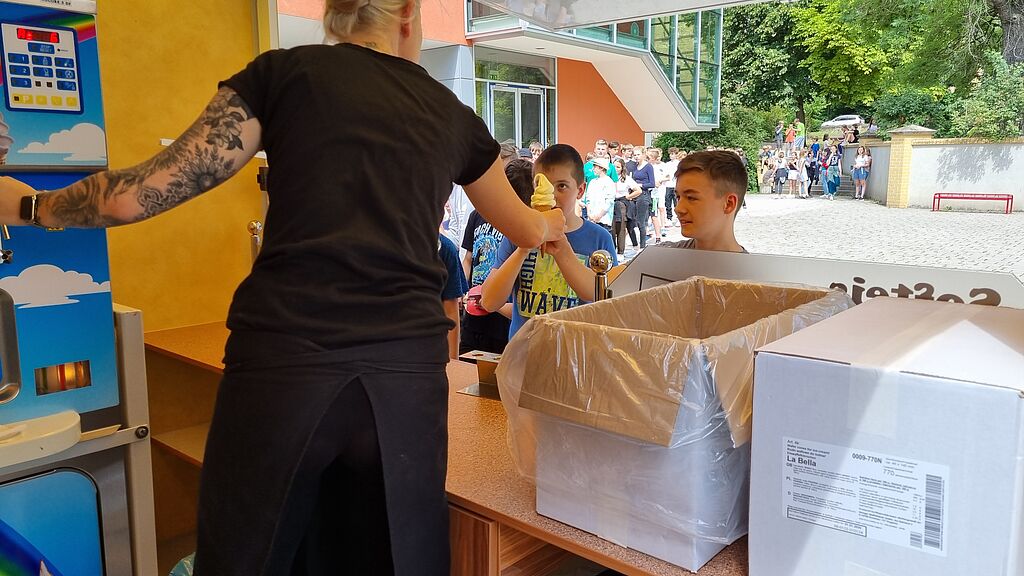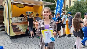 Alle TeilnehmerInnen erhielten in diesem Jahr als Trostpreis ein Skizzenbuch mit fantasieanregenden Aufgaben und Bildausschnitten, die zum Zeichnen auch in den Sommerferien anregen sollen. Ein großes Dankeschön allen, die mit ihren Beiträgen dafür gesorgt haben, dass die gesamte Schüler- und Lehrerschaft von der regionalen Volksbank ein Eis spendiert bekam.
