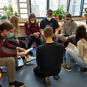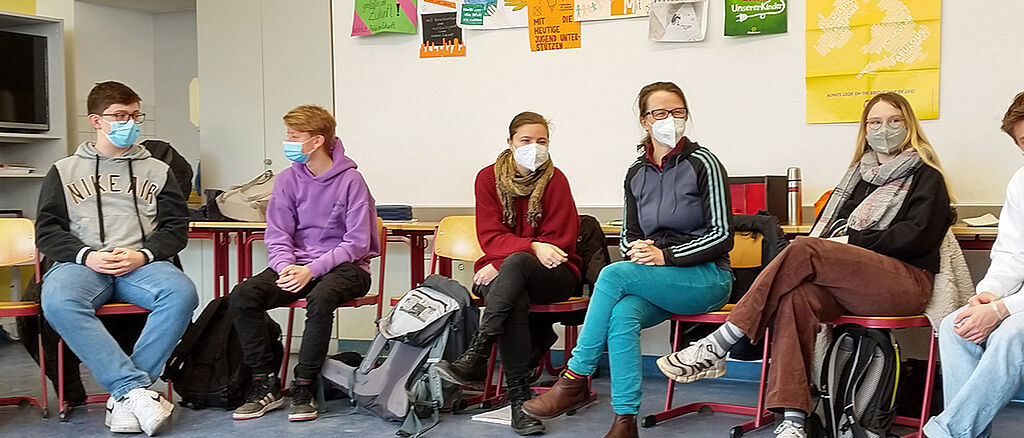 Erst kurz bevor das Schuljahr 2021/22 zu Ende ging, konnte die Klasse 10d ihr Projekt Premierenklasse zu einem erfolgreichen Abschluss bringen. Bei einem erneuten Besuch von Friederike Dumke und Katja Stoppa reflektierten die Schülerinnen und Schüler der 10d ihre Erfahrungen und Gedanken und ließen sich Fragen, die während der gemeinsamen Arbeit aufgekommen waren, beantworten.