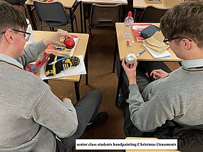 Die Rudolstädter Projektideen stießen vor Ort auf offene Ohren, sodass seitens der irischen Schüler angekündigt wurde, ebenfalls ein Video über deren Schulalltag für unsere Fridericianer zu drehen. Das soll der Auftakt für projektorientierte Videokonferenzen bzw. - kurzbotschaften im monatlichen Turnus sein. Dem Projektthema „Talking about Our School“ wird das Projekt „Christmas Traditions“ folgen, das bereits vor Ort mit dem Bemalen von Weihnachtsschmuck begonnen hat.