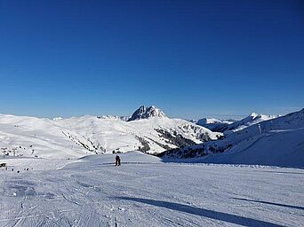 Schon am Nachmittag des ersten Tages waren alle Skischüler*innen auf den Gipfelpisten des Wildkogels präsent. Das lag vor allem an dem optimalen Betreuungsschlüssel für die Einsteiger und deren unermüdlicher Motivation bei den ersten Grundübungen. Es freute die Sonne so, dass sie es sich nicht nehmen ließ, die gesamte Woche nach unseren Skihelden Ausschau zu halten - ein Traumwetter mit motivierten Schüler*innen!