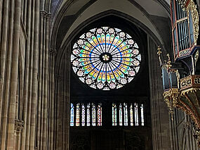 Neben dem Parlement Européen besuchten wir das Musée historique – Das Musée alsacien war wegen des Streiks leider geschlossen! –, wurden von einem befreundeten Geschichtslehrer durch die Cathédrale Notre Dame geführt, machten einen ausgiebigen Rundgang durch La Petite France, ließen den Palais du Rhin, in dem heutzutage ein Teil der Regionalverwaltung untergebracht ist, mit seiner wechselhaften Geschichte auf uns wirken und waren am letzten Abend – ganz traditionell – beim Flammkuchenessen. Viele Referate wurden in französischer Sprache an verschiedenen Orten der wunderschönen Stadt von sehr gut vorbereiteten SchülerInnen gehalten. Unterschiedliche französische Spezialitäten wurden rund um die Place Kléber entdeckt und auch mit nach Hause genommen.