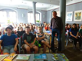 Bevor das Schuljahr zu Ende ging, ergab sich für die Schüler der 6. Klassen recht kurzfristig noch die Gelegenheit zu einer Begegnung mit einem Autor von Kinderbüchern.