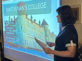 Drei Schülerinnen unseres Gymnasiums berichteten am 28. August 2023 vor den Mitgliedern des Rotary Clubs Rudolstadt über unsere deutsch-irische Schulpartnerschaft sowie ihre Erlebnisse an unserer Partnerschule „St. Eunan´s College“.