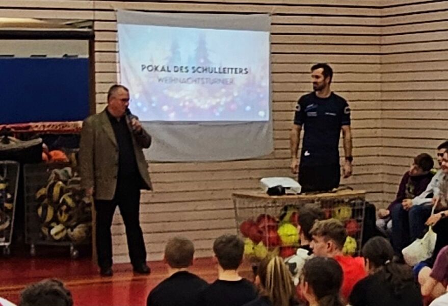 Am 21.12.2023 traten 6 Teams zum Volleyballturnier um den "Pokal des Schulleiters" in der Turnhalle des Gymnasiums im Modus "Jeder gegen Jeden" an. Dabei stellten die Lehrer*innen zwei Teams und die Klassenstufe 9-12 je ein Mixed-Team auf.