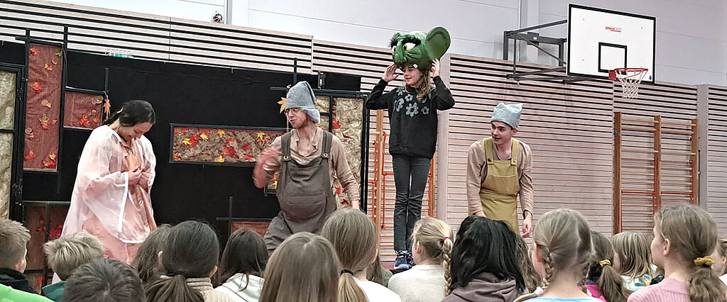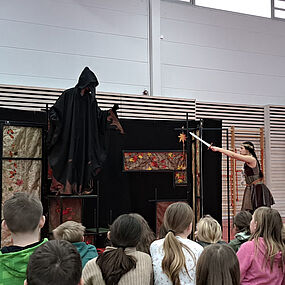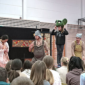 Auch hier war häufig Schmunzeln angesagt, wenn Schüler oder Lehrer ins Stück einbezogen wurden oder Schüler sich und ihre Interessen im Stück wiederfanden. Eine rege Fragerunde, die über die Frage nach der Lieblingsspeise hinausging, bildete den gelungenen Abschluss dieser Veranstaltung.
