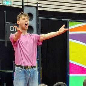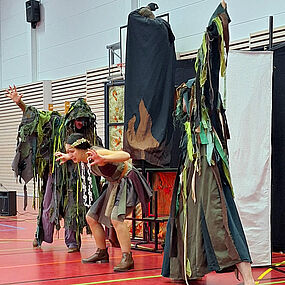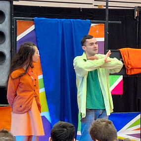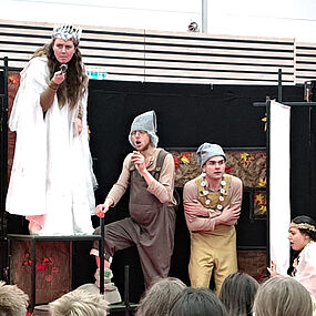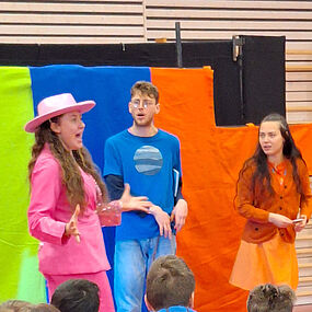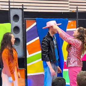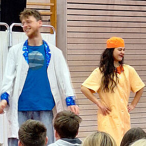 Die Klassenstufen 7 bis 9 erlebten ein thematisch aktuelles Stück mit dem Namen „Success Story“, das sich kritisch mit medial vermittelten Rollenbildern auseinandersetzte, Diversität und Geschlechteridentität thematisierte und den Einfluss von Social Media bzw. die Beeinflussung durch Werbung und Influencer auf lebendige Weise zeigte. Ansinnen des White Horse Theatre war es, mit dem Stück „Jugendliche bei ihrer Identitätssuche zu ermutigen, gesellschaftliche Erwartungen kritisch zu reflektieren und sie dabei zu unterstützen, ihren ganz eigenen Weg zu finden.“