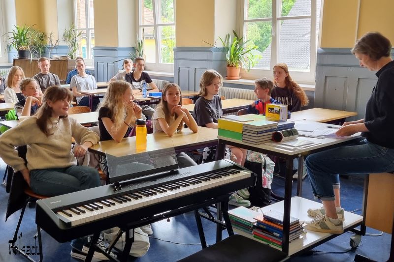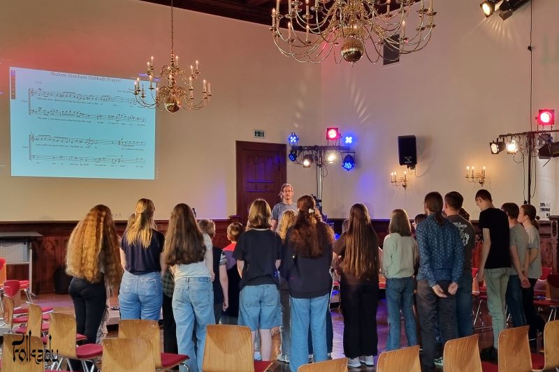 „Shalom, ani Yael“, „Shalom, ani Simon“ – so stellten sich die beiden MusikerInnen der Band Folkadu vor, welche zwei Tage am Gymnasium Fridericianum Rudolstadt gastierten, um mit dem Schulchor musikalisch zu arbeiten.