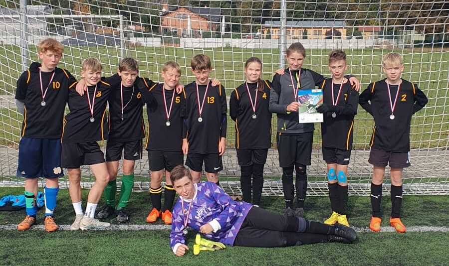 Nebel lag über dem Platz und erstmal wollte das Thermometer nicht mehr als 0°C anzeigen. So starteten unsere Schüler ebenfalls mit einer 0 hinten und vorne und somit Unentschieden gegen das Erasmus-Reinhold Gymnasium aus Saalfeld in Gruppe A. Insgesamt reisten 8 Mannschaften an und spielten in 2 Gruppen die vier Halbfinalisten aus. Nach der Punkteteilung zu Beginn konnte sich unser Team mit schönen Toren und viel Ballbesitz Platz 1 in der Gruppe sichern.