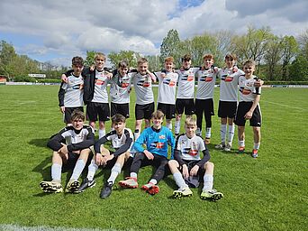 Bei Aprilwetter pur startete unser Team motiviert ins erste Spiel gegen das Gymnasium aus Zella-Mehlis. Gefällige Kombinationen, herausgearbeitete Chancen und sichtbare Überlegenheit - eine Leichtsinnigkeit, ein Konter und die Mannschaft lag mit 0:1 hinten. Trotz sehr guter weiterer Torchancen wollte das Runde nicht ins Eckige. Am Ende verloren wir ein Spiel durch einen Konter. Hart - das Team raufte sich zusammen und wollte sich im nächsten Spiel beweisen, dass es auch gewinnen kann. Mit dem Rhön-Gymnasium war dies ein schwerer Brocken. Schnelle Spieler mit robustem Körpereinsatz setzten der Verteidigung zu und störten den Spielaufbau zeitig. Auch hier führte ein leichtsinnig verlorener Ball an der Mittellinie zu einem erfolgreichen Konter für den Gegner. Nach diesem Gegentor fand das Team keinen Zugriff mehr zum Spiel, hatte aber noch eine gute Chance zum Ausgleich.