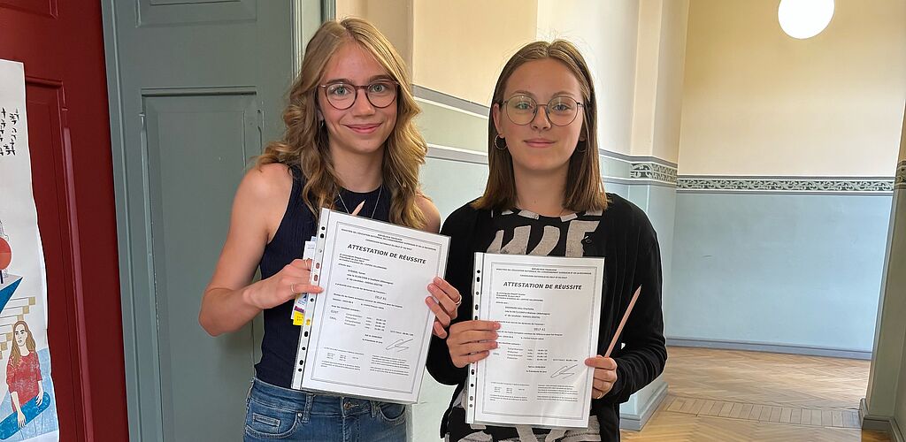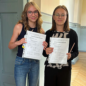 Am 08.06.2024 fanden diesen Sommer die DELF scolaire-Prüfungen statt. In Jena stellten sich Sarah Stößel und Lilou Charlotte Engmann, zu diesem Zeitpunkt noch Klasse 8b, der Prüfung, die sie ganz hervorragend bestanden.