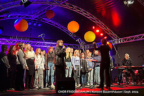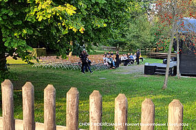 Zunächst hatten die Wetterprognosen düstere Bilder gezeichnet - letztendlich wurde es ein wunderschöner Spätsommerabend, der auch dieses Konzert zu einem schönen Erlebnis machte. Obwohl einige Choristen krankheitsbedingt ausgefallen waren (da wirkten wohl noch die vielen Aktivitäten rund ums Schuljubiläum nach ...) - fand unser Konzert beim Publikum großen Anklang. Dass dann doch nicht so viele Zuhörer im Vergleich zum Releasekonzert eine Woche zuvor zu uns finden würden, war uns klar, aber es waren dann doch mehr, als wir erwartet hatten - zumal der Termin kurz zuvor auch noch um einen Tag vorverlegt worden war.