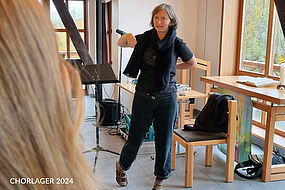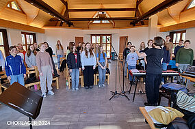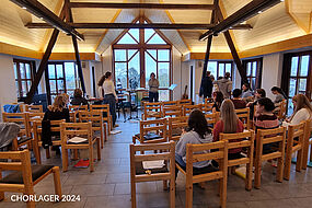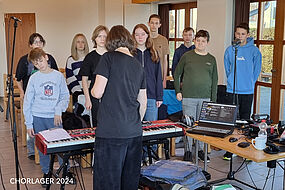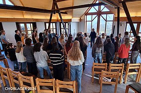 In diesem Jahr waren wir mit einer großen Chorgruppe angereist - zum Glück hatten wir Laura dabei, die uns auch in diesem Jahr wieder tatkräftig bei der Probenarbeit unterstützte und vor allem mit den Altist:innen arbeitete. Das ist schon sehr besonders, wenn sich jemand extra Urlaub nimmt, um mit uns die freie Zeit auf dem Berg zu verbringen. Der nun wieder größer gewordene Chor war jedenfalls motiviert, an neuen Songs zu arbeiten.