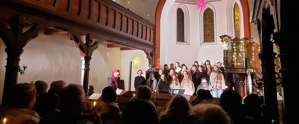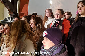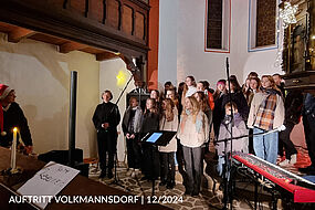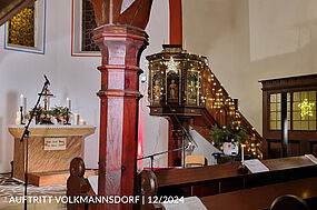 In Anbetracht der vielen Aktivitäten der "Größeren" hatte sich das Chorleiterteam dafür ausgesprochen, dass nur der Termin außerhalb von Rudolstadt vom großen Chor wahrgenommen werden sollte und dort auch nicht mit einem explizit vorweihnachtlichem Programm, sondern mit Songs aus dem Repertoire. Das kam erneut in der Kirche von Volkmannsdorf am Dritten Advent trotz sehr niedriger Temperaturen wieder sehr gut an. Vielen Dank an alle, die der Kälte getrotzt haben.