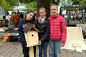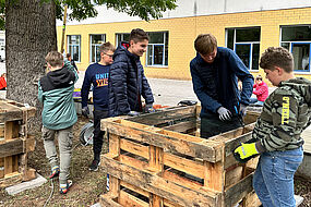 Am Freitag, dem 13.09.2024, haben sich Toni Baudisch sowie die Lehrerinnen Nicole Ströhlein und Julia Stephan mit Schülerinnen und Schülern des Gymnasiums ans Werk gemacht und den Schulhof mit zwei neuen Hochbeeten, einer Bank sowie Nistkästen für heimische Tierarten verschönert.