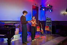 Ein Stück mit gleichsam emotionaler Tiefe und einem ersten Auftritt in der Filmmusik ist das Lied „Shallow“, gesungen von Lady Gaga und Bradley Cooper aus dem Film „A Star is born“. Alwin Skarke am Klavier und Nelli Winzer sangen gemeinsam an zweiter Stelle des Abends. Ihre gemeinsame Erfahrung mit dem Gesang im Chor konnte sich auch hier widerspiegeln, und der Mut, öffentlich zu singen, ermöglichte es den Zuhörern, dem wunderschönen Kontrast und der Harmonie beider Stimmen zu lauschen.