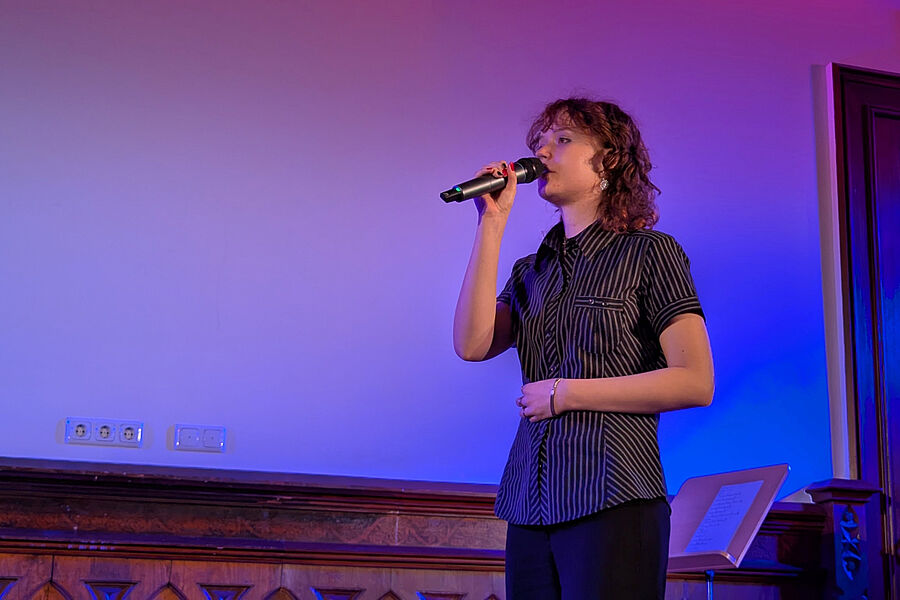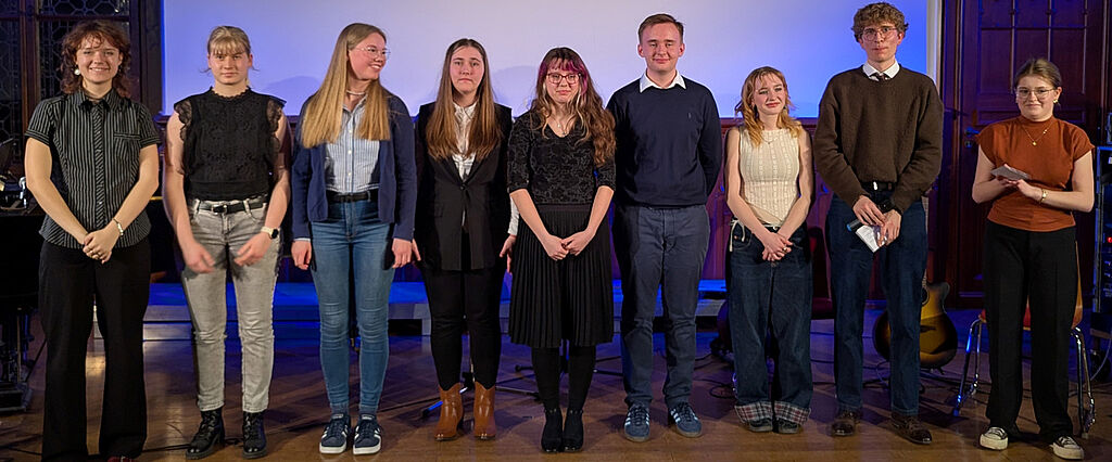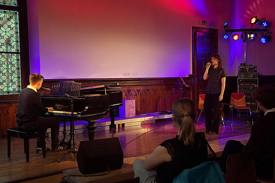 Am 24. März war auch in diesem Jahr die öffentliche Liedleistungskontrolle des Musikkur-ses der 12. Klassen ein musikalisches Highlight. In der Aula des Gymnasiums konnten die Schüler*innen ihr musikalisches Talent und das Ergebnis von zum Teil jahrelanger Übung einem größeren Publikum präsentieren – freiwillig und außerhalb des Klassenraums. Das Programm des Abends wurde von den Freiwilligen selbst zusammengestellt und bot daher eine bunte Mischung von Künstlern und emotionalen Eindrücken.