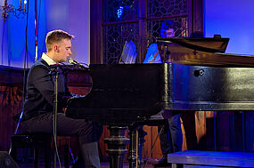 Ein dritter und letzter filmmusikalischer Beitrag von Elisabeth Filanowitsch am Bass und Elina Stieler am Klavier ermöglichte es dem Publikum, noch einmal in eine andere Welt einzutauchen. Mit dem „Mia and Sebastian Theme“, geschrieben von Justin Hurwitz für den Film „La La Land“, wird die romantische und nachdenkliche Stimmung weitergetragen.