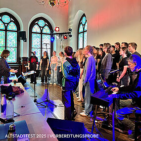 Am Chorprobentag (Mo, 19.05.) versammelte sich der Chor zur intensiven Auffrischung des Repertoires für die kommenden Veranstaltungen - Altstadtfest, Zukunftsmusik und das Chorabschlusskonzert Ende Juni. Im Mittelpunkt standen die Songs für das noch in derselben Woche stattfindende Altstadtfest, wo der Chor zum wiederholten Male eingeladen war.