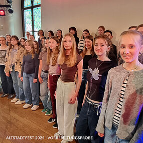 Die Stadt Rudolstadt berichtet sehr euphorisch auf ihrer Altstadtfestwebseite über den Kurzauftritt des Chores Fridericianum, der am 23.05.2025 am zeitigen Abend über die Bühne ging. Zum wiederholten Mal war der Chor an diesem städtischen Jahreshöhepunkt beteiligt. Die Wertschätzung, die damit verbunden ist, wissen der Chor und die ChorleiterInnen sehr zu würdigen. Der Chor freut sich bereits auf ein nächstes Mal ...