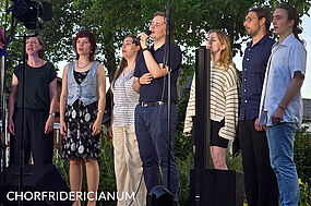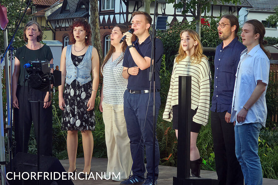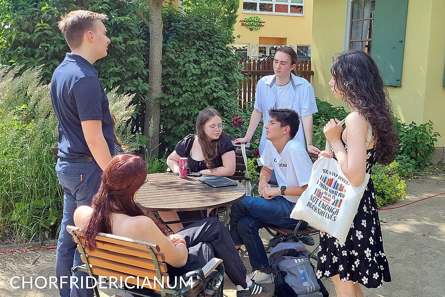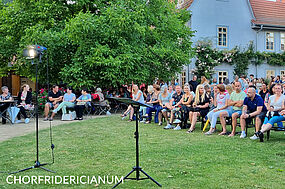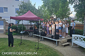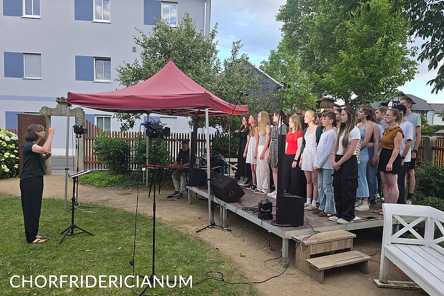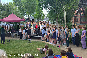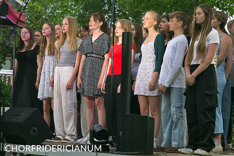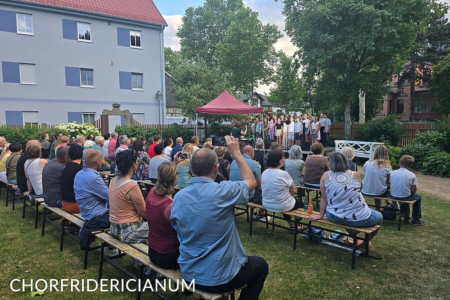 Am Ende des Schuljahres veranstalteten die beiden Chöre des Fridericianums ihr Chorabschlusskonzert im schönen Ambiente im Garten des Schillerhauses. Im letzten Jahr mussten die Chöre witterungsbedingt leider kurzfristig in die Aula des Fridericianums ausweichen. In diesem Jahr sollte aber - trotz Unwetterwarnung - das Konzert unbedingt wieder Open Air stattfinden.