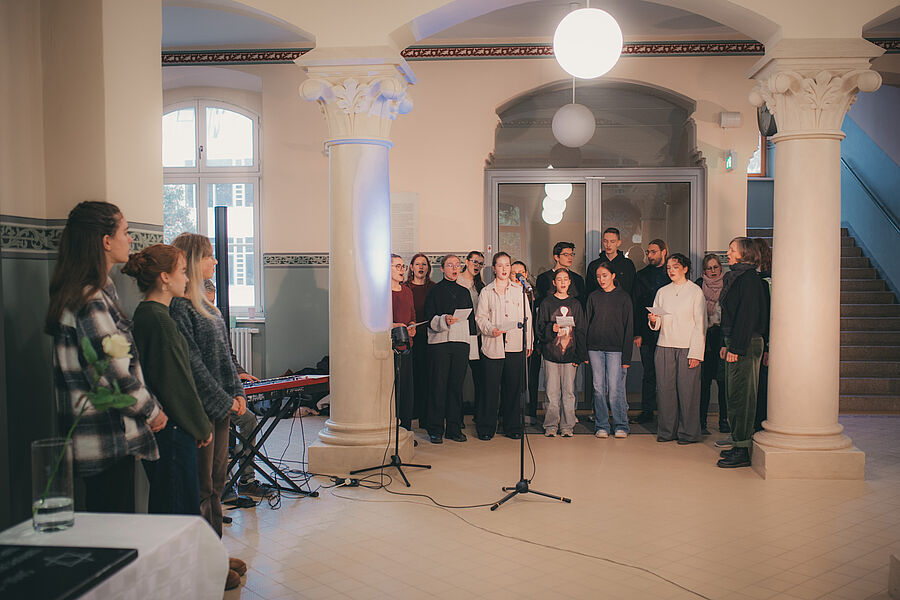 Der Schulchor begleitete die Veranstaltung mit bewegenden Liedern, die dem Gedenken einen würdevollen und berührenden Rahmen gaben.