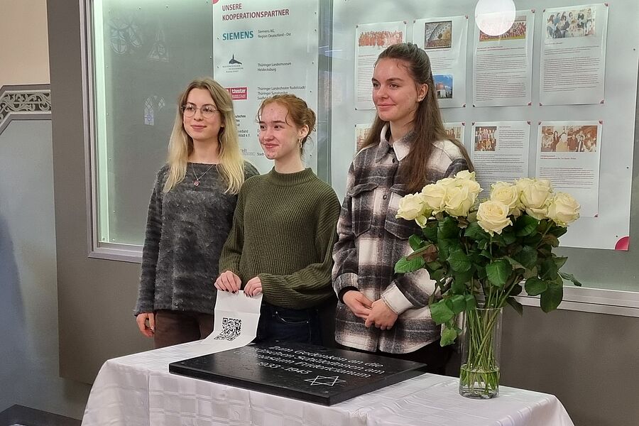 Im Rahmen einer Seminarfacharbeit „Juden am Gymnasium Fridericianum zur Zeit des Nationalsozialismus“ entstand ein Rundgang des Gedenkens an die Opfer dieser Zeit. Als Teil dieses Projekts enthüllten Schüler des Rudolstädter Gymnasiums jetzt eine Gedenktafel und hielten eine Rede zum Andenken an die Opfer, um an ihr Schicksal zu erinnern und ein Zeichen gegen das Vergessen zu setzen. „Der Schulchor begleitete die Veranstaltung mit bewegenden Liedern, die dem Gedenken einen würdevollen und berührenden Rahmen gaben“, heißt es in einer Mitteilung.