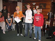 Nach dem Wettkampf wurden alle Skirennläufer auf einen Skilagernamen getauft. Zur Skitaufe gehörte ein geheimes Ritual, welches wir den nachfolgenden Jahrgängen nicht verraten … . Am Abend fand noch ein kleines Abschiedsfest statt, bei dem jedes Zimmer einen Beitrag leistete. Es wurde gespielt, geraten, gesungen und gedichtet. Die 7 Tage in Rokytnice gingen herum wie eine Abfahrt auf der schwarzen Piste. Uns hat es allen viel Spaß gemacht, auch wenn wir noch nicht Profis geworden sind. Am Sonnabend kehrten wir wieder fröhlich und müde nach Rudolstadt zurück. Vielen Dank an Frau Weise und Herrn Treuter. Mit Ihnen hat es richtig Spaß gemacht in den Bergen von Tschechien.