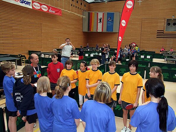 Vom 5. bis 9. Mai trafen sich 3000 Sportler aus ganz Deutschland in Berlin, um in den Sportarten Volleyball, Handball, Basketball, Turnen, Badminton und Tischtennis ihre Bundessieger für Schulmannschaften zu ermitteln. Wie im letzten Jahr qualifizierte sich auch in diesem Jahr die Tischtennismannschaft des Gymnasiums „Fridericianum“ durch ihren Sieg beim Landesfinale für diesen schulsportlichen Höhepunkt. Die jungen Damen im Alter von 11 bis 14 Jahren hatten sich fest vorgenommen, den 14. Platz aus dem Vorjahr zu verbessern.