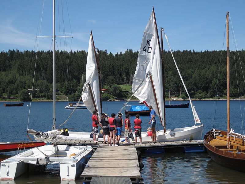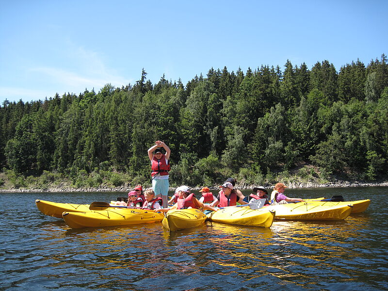 In den nächsten Tagen waren interessante Aufgaben zu lösen: Kajak und Kanadier fahren, Segeln, Klettern an einer Indoor-Kletterwand, eine Mountainbike-Tour zum Schloss Burgk und eine GPS-Tour. Gelegenheiten die man nicht alle Tage hat. Unsere Aufgaben während der GPS-Tour bestand ua. darin, ein rohes Ei so mit Naturmaterialien zu verpacken, dass es nicht kaputt geht, wenn man es von einem ca. 2 m hohem Dach rollen lässt. Zur Seite standen uns unsere Lehrer und die Teamer des SEZ.