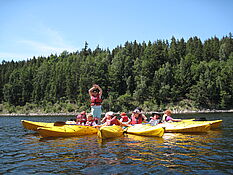 Am Dienstag, nach dem Frühstück, wurde erklärt, welche Aktivitäten für welche Gruppe anstanden. Gruppe 1+2 ging auf Ganztages-Mountainbike-Tour, Gruppe 3+4 ging Segeln und Kajakfahren und Gruppe 5+6 brach zur GPS-Tour auf. Kleine Bootskunde: In einem Kajak sitzt nur eine Person mit einem Doppelpaddel.