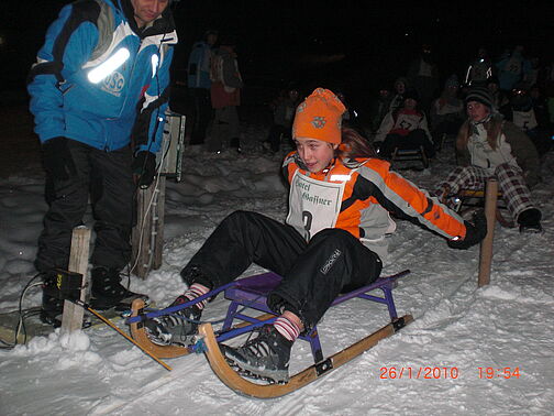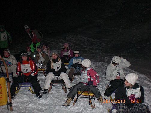 Aber wir fuhren nicht nur Ski, wir hatten auch viel Spaß beim Mondscheinrodeln. Jeder von uns bekam einen Schlitten und unsere Rodelzeit wurde gestoppt und so der Sieger ermittelt. Am letzten Abend veranstalteten wir ein Abschlussprogramm. Jedes Zimmer leistete einen Beitrag dazu. Dabei hatten wir alle Riesenspaß. Wir bekamen auch Urkunden und Preise.