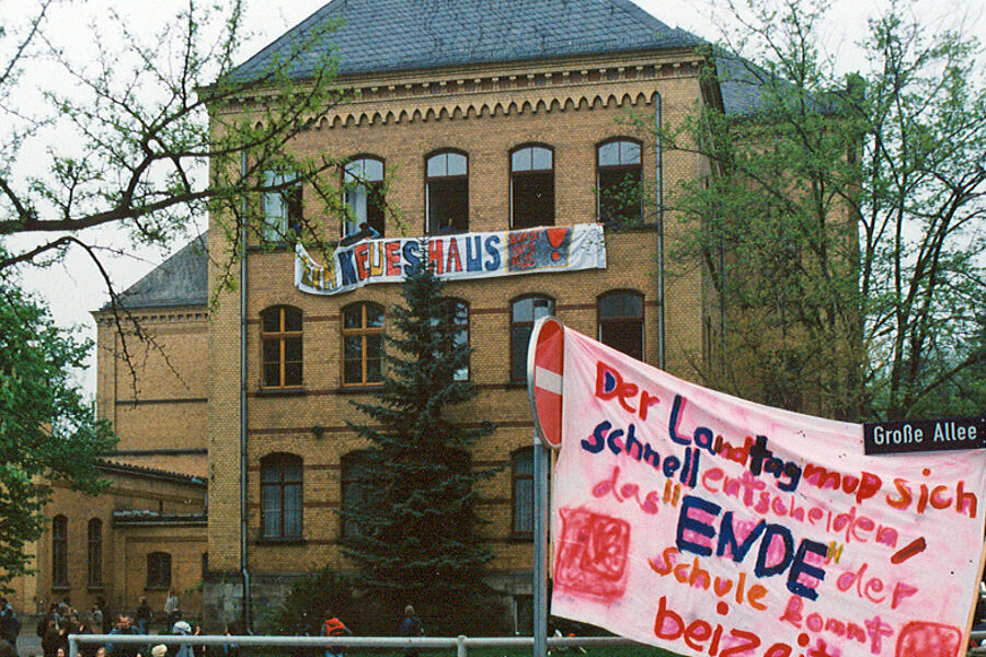 Die gesellschaftlichen Umbrüche 1989 führten auch an der EOS zu großen Diskussionen und letztendlich zu großen Veränderungen. Ende 1989 stellten die Grundorganisationen der FDJ, GST, DSF und DRK ihre Tätigkeit ein und an Stelle der staatlich gelenkten Jugendbewegung trat ein gewählter Schülerrat. Auch die Schulparteiorganisation der SED löste sich auf. Im Schuljahr 1990/91 verfügte ein ministerieller Erlass die Wiedereinführung der 9. und 10. Klassen als Vorbereitungsklassen und mit der Durchsetzung des gegliederten Schulsystems 1991 wurde das