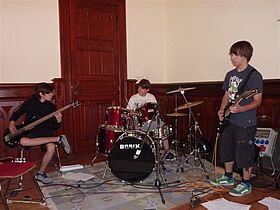 Anlässlich der Projekttage trafen sich musikbegeisterte Schüler vom 22.06.-25.06.11 unter der Anleitung von Frau Naumann und Herrn Haupt zum Projekt "Schulband".