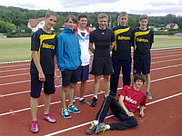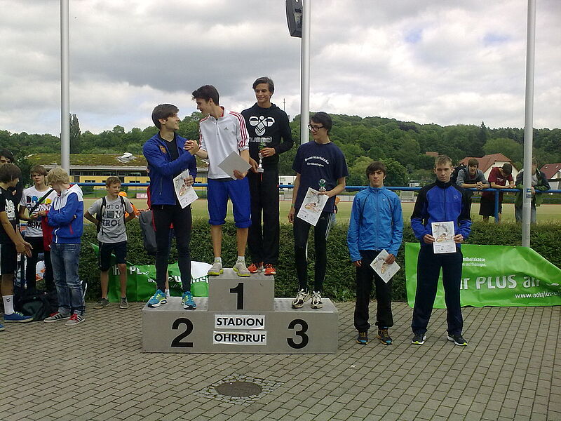 Bei kaltem Wetter aber optimalen Wettkampfanlagen starteten Felix Franke, Moritz Hiemisch, Willi Kraus, Jason Wienhold, Philipp Vofrei, Maximilian Wendt und Paul Silz zum Landesfinale in Ohrdruf. Leicht geschwächt durch den krankheitsbedingten Ausfall von drei Schülern wollten die Jungen unseres Gymnasiums sich so teuer wie möglich verkaufen. Klar war allen, dass die LA-Teams der Sportgymnasien aus Erfurt und Jena sowie das GY Großengottern nicht zu schlagen waren. Zielstellung war das GY Schmalkalden hinter sich zu lassen. Nach zwei Disziplinen war der Abstand mit 40 Punkten denkbar knapp. Motiviert ging das Team ans Aufholen. Leider konnten nicht alle Aktive ihre guten Leistungen aus dem Regionalfinale abrufen, Verletzungspech zwang zur Umstellung der Staffel. Zum Schluss trennten uns deutliche 400 Punkte zum vierten Platz.