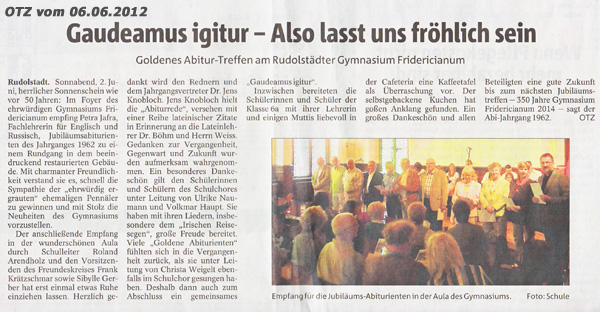 Gaudeamus igitur - Also lasst uns fröhlich sein - Goldenes Abitur-Treffen am Rudolstädter Gymnasium Fridericianum