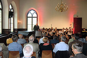 Der anschließende Empfang in der wunderschönen Aula durch den Schulleiter Herrn Arendholz und den Vorsitzenden des Freundeskreises Herrn Krätzschmar sowie Frau Gerber hat erst einmal etwas Ruhe aufkommen lassen.