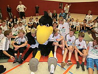 Unsere Kids haben allesamt ihr Bestes gegeben und haben tolle Tage hier erlebt die noch lange in Erinnerung bleiben werden. Und so ging es am Abend zur Abschlussveranstaltung in die Halle. Steffi Jones, Direktorin des DFB (ehemalige vielfache Nationalspielerin und Weltmeisterin) und Paule, das offizielle Maskottchen des DFB, nahmen die Auszeichnungen vor. Ball-Freestyler zeigten noch einmal ihre Künste - unglaublich, was mit einem Ball veranstaltet werden kann. Aufgrund der tollen Atmosphäre über die gesamten Tage gab es eigentlich keine Verlierer beim Turnier sondern nur Gewinner.
