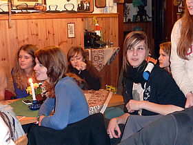Daneben gab es aber auch Freizeit, die am Nachmittag zum Rodeln und am Abend zum Tischtennisspielen gern genutzt wurde. Zum Abschluss gab es die traditionelle Nachtwanderung nach Zeigerheim in die Kneipe zum fröhlichen Musizieren und Heißgetränk-Genießen.