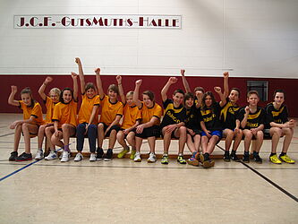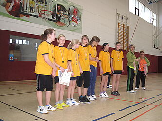 Das Mädchenteam startete mit einem sicheren Sieg gegen die RS Scholl (Bad Blankenburg) in das Turnier. Doch schon im nächsten Spiel gegen Neusitz bekamen die Mädels ihre (spielerischen) Grenzen aufgezeigt. Gegen die aggresiveren und schneller umschaltenden Mädchen wurde kein Mittel gefunden und so verlor man folgerichtig mit 4:16. Angespornt, den zweiten Platz zu erringen, ging man ins letzte Spiel gegen die RS Schiller (RU) wieder konzentrierter zu Werke und gewann verdient 14: 6. Auch den Mädchen gebührt ein großes Dankeschön für ihre Einsatzbereitschaft.