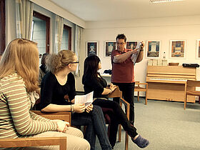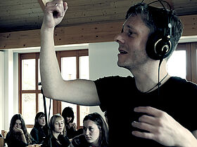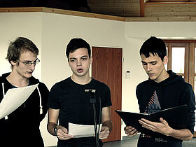 In diesem Jahr standen die Aufnahmen für die neue Chor-CD im Rahmen des 350. Jubiläums unserer Schule an. Natürlich wurde deshalb auch wieder an unserer Singtechnik gearbeitet und unser Chorklang verbessert. Die meisten waren schon minderstens einmal mit, um zu wissen, was da auf sie zukommt. Neben den vielen Proben und Aufnahmen, in denen wir zusammen konzentriert miteinander musizierten, verbrachten wir unsere Freizeit beim Tischtennis- und Vollyballspielen oder bei gemeinsamen kleinen Wanderungen. Viele Chorsänger entschwanden in den Pausen auch immer wieder in die Probenräume, um in kleinen Gruppen an eigenen Liedern zu proben.