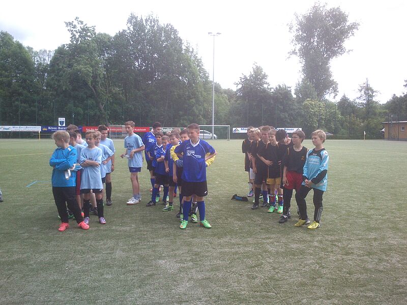 Am 27. Mai trafen zum Kreisfinale Fußball der WK IV m 6 Teams auf der Sportanlage "Saalewiesen" (Saalfeld) aufeinander. Gespielt wurde in zwei Gruppen a´drei Teams: Vorrunde, Halbfinale (Überkreuzvergleich) und Finale. Mit dem Erasmusgymnasium Saalfeld und der RS Neusitz wurde die Vorrunde ausgespielt. Beide Begegnungen wurden souverän gewonnen und so traf unser Team im Halbfinale auf den Zweitplatzierten der Gruppe B - dem Gymnasium Königsee. In dieser Partie wurde sich kein Meter geschenkt, Rudolstadt war spielerisch geschickter und hatte gute Tor-Schüsse erarbeitet - aber eben kein Tor. Prenzlich wurde es zudem noch vor dem eigenen Gehäuse, als die Königseeer zwei sehr gute Konterchancen nicht für sich verwerteten. So hieß es 0:0 und im anschließenden 9m-Schießen hatte unser Team die besseren Nerven und zog ins Enspiel zur Qualifikation für das Schulamtfinale, am 17.06.2014 in Steinach, ein. Das Erasmusgymnasium hatte sich ebenfalls das Endspiel erkämpft und so kam es zu einer zweiten Auflage: RU-Saalfeld. Nach einem anfänglichen offenen Schlagabtausch fanden die Einheitspieler zu ihren Stärken, dem Kombinationsfußball, zurück und belohnten sich mit einem 2:0 Sieg und dem Weiterkommen. In Steinach will man sich sehr gut verkaufen und träumt schon vom Bundesschülercup ...