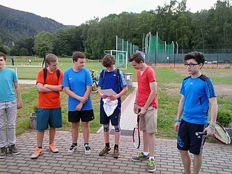 Am 04. Juni trafen sich die Tennisteams aus Königsee und unserem Gymnasium, um die Qualifikation zum Landesfinale am 25.06.2014 in Apolda aus zu spielen. Die Jungen siegten mit 4:2 und vertreten somit den Schulamtsbereich Südthüringen zum Landesfinale. Gratulation und einen Dank an Herrn Makiol für die Betreuung des Teams.